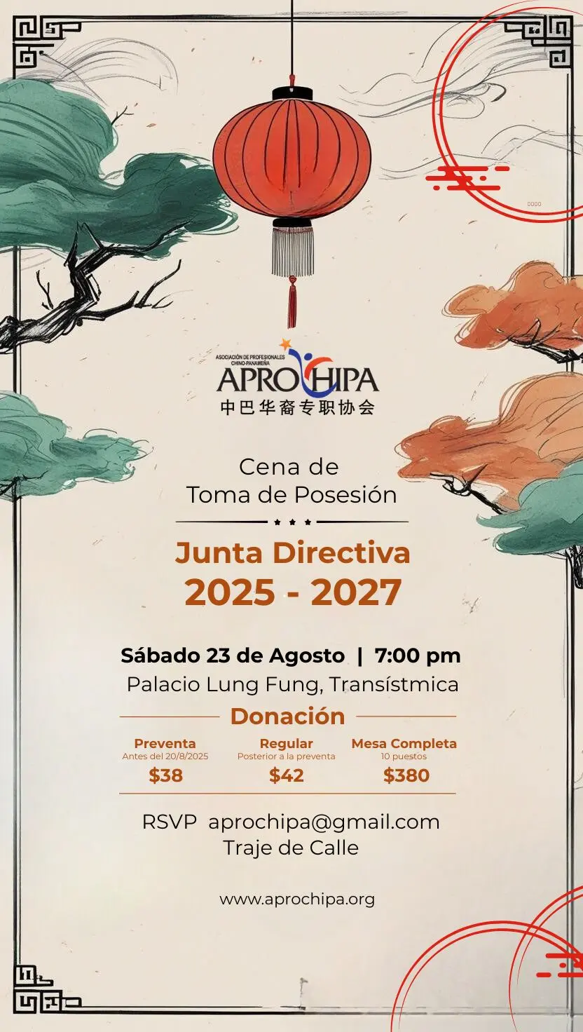 Este evento presencial es una oportunidad única para vestirnos de gala, compartir entre colegas, aliados y amigos, y fortalecer los lazos que nos unen. Celebremos nuestras raíces con un exquisito banquete chino mientras construimos nuevas conexiones y vislumbramos el futuro juntos.